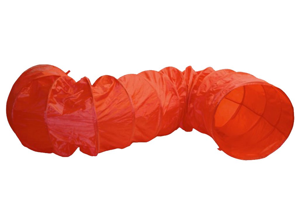 Agility tunel pro psy s praktickou úložnou taškou, tunel z odolného nylonu, spirálové pružinové tyče, v balení upevňovací kolíky, variabilní nastavení tvaru, délka tunelu 5m, průměr tunelu 60 cm.