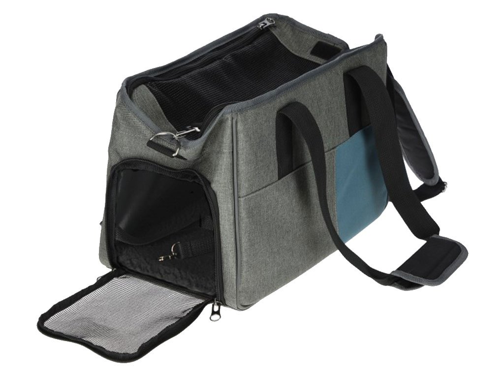 Taška Vás ohromí svou výbavou a skvělým provedením. Nastavitelný popruh s polstrováním lze využít pro nošení přes rameno nebo v ruce. Aby byl při nošení mazlíček v bezpečí, můžete ho připnout na krátké vodítko a v tašce uzavřít pomocí síťované vsadky, která zajistí optimální cirkulaci vzduchu. Boční otvor se síťovanou vsadkou lze otevřít a mazlíček může pozorovat okolí. Vyztužené stěny tašky zajistí mazlíčovi bezpečí a pohodlí, navíc boční stěna obsahuje úložnou přihrádku, do které lze uložit pamlsky nebo vodítko. Praktická vyztužená podložka s plyšovým potahem poslouží jako pohodlné místo pro odpočinek a také udržuje tvar tašky. V případě, že zrovna nikam se psem necestujete, můžete tašku snadno složit a uschovat.