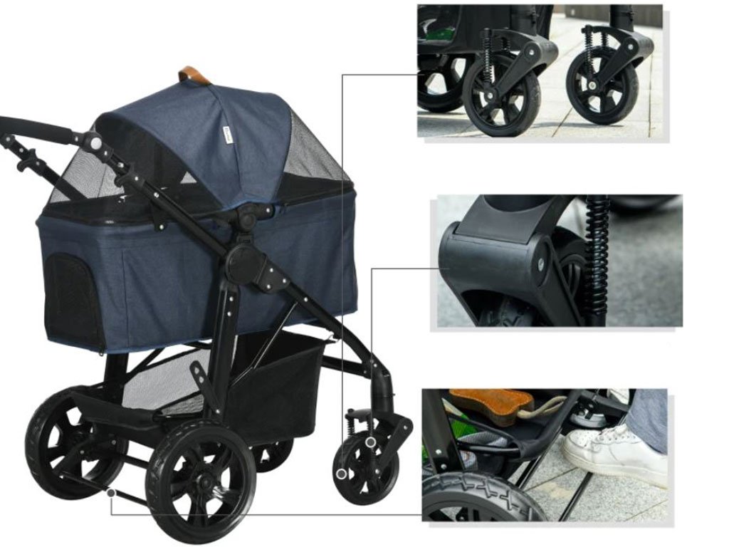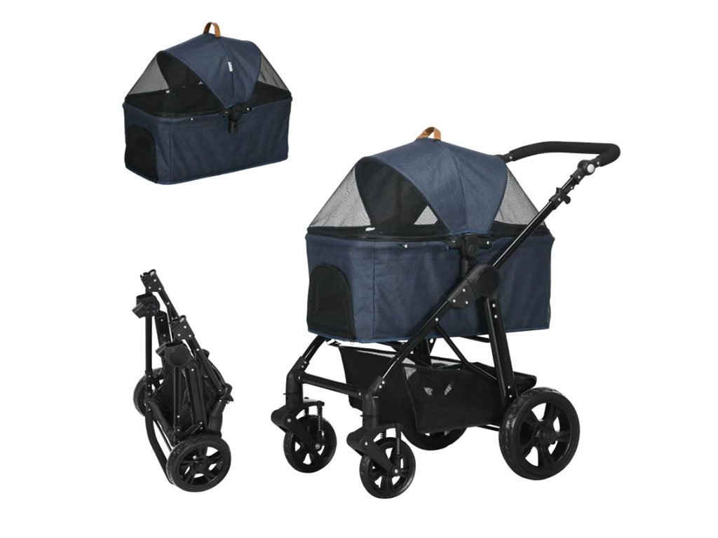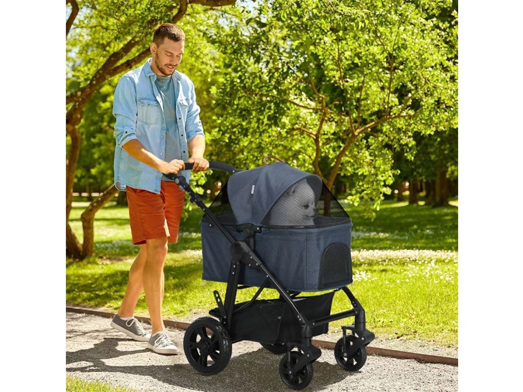 Kočárek pro psy 2v1 PAWHUT D00-123BU, tmavě modrý
