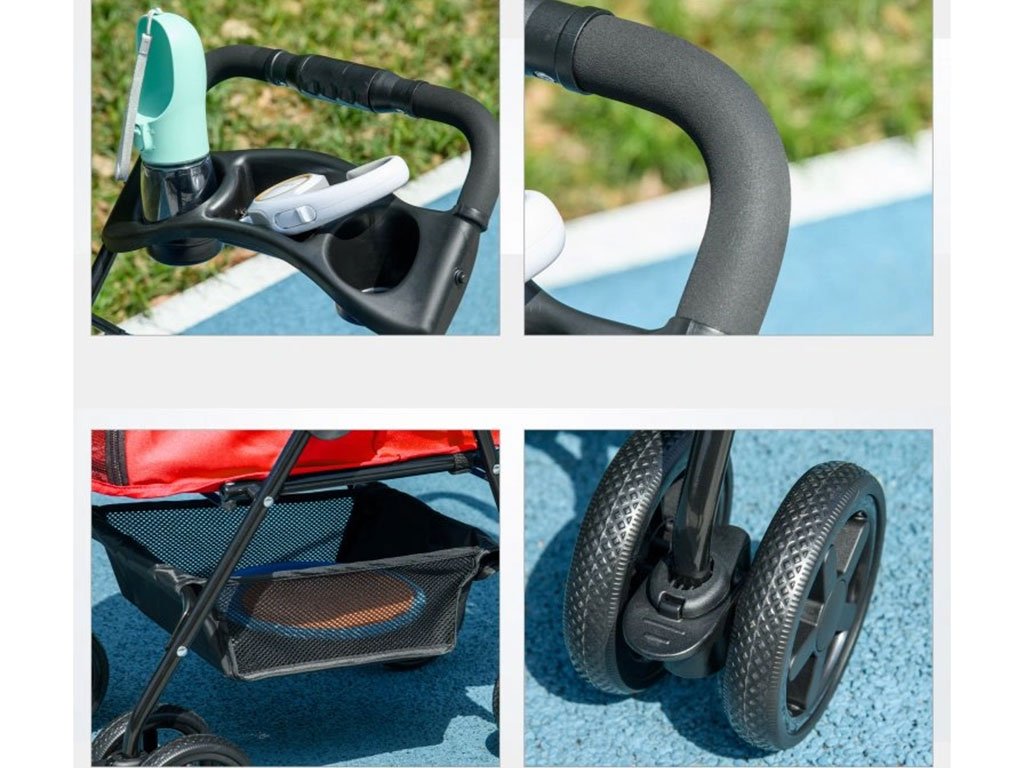 Pohodlný kočárek pro psy můžete vyžít na procházky do města, nebo do parku. Příjemnou jízdu zajistí dvojitá otočná přední kola a zadní dvojitá pevná kola, která lze zajistit dvěma brzdami.