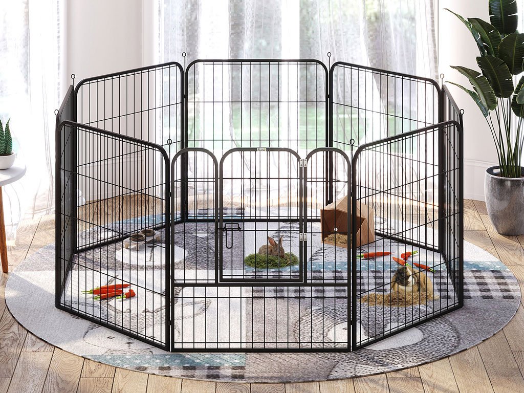 Ohrádka je ideální pro vnitřní i venkovní použití. Vaši mazlíčkové si v ní budou moci pohodlně užívat svobodu pohybu a sledovat dění kolem sebe, zatímco vy si můžete být jisti, že zůstanou v bezpečí a nepoškodí žádný nábytek nebo zařízení domácnosti. Přístup do ohrádky je zabezpečen pomocí vyvýšených uzamykatelných dvířek, které poskytují ještě větší bezpečnost. Ať už se rozhodnete ohrádku sestavit nebo demontovat, vše zvládnete během chvilky, a pokud ji právě nepotřebujete, jednoduše ji uskladníte. Materiál ohrádky je velmi pevný a odolný, takže si můžete být jisti, že vydrží i náročné podmínky a snadno se udržuje v čistotě.