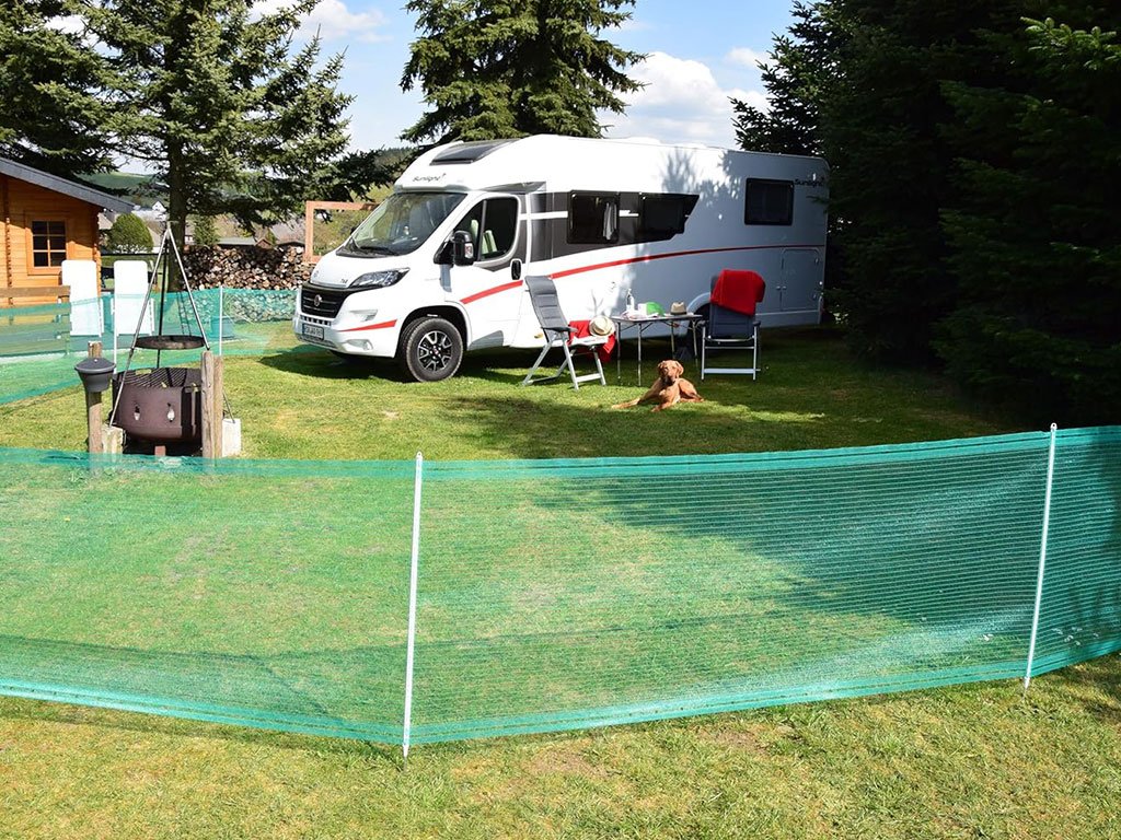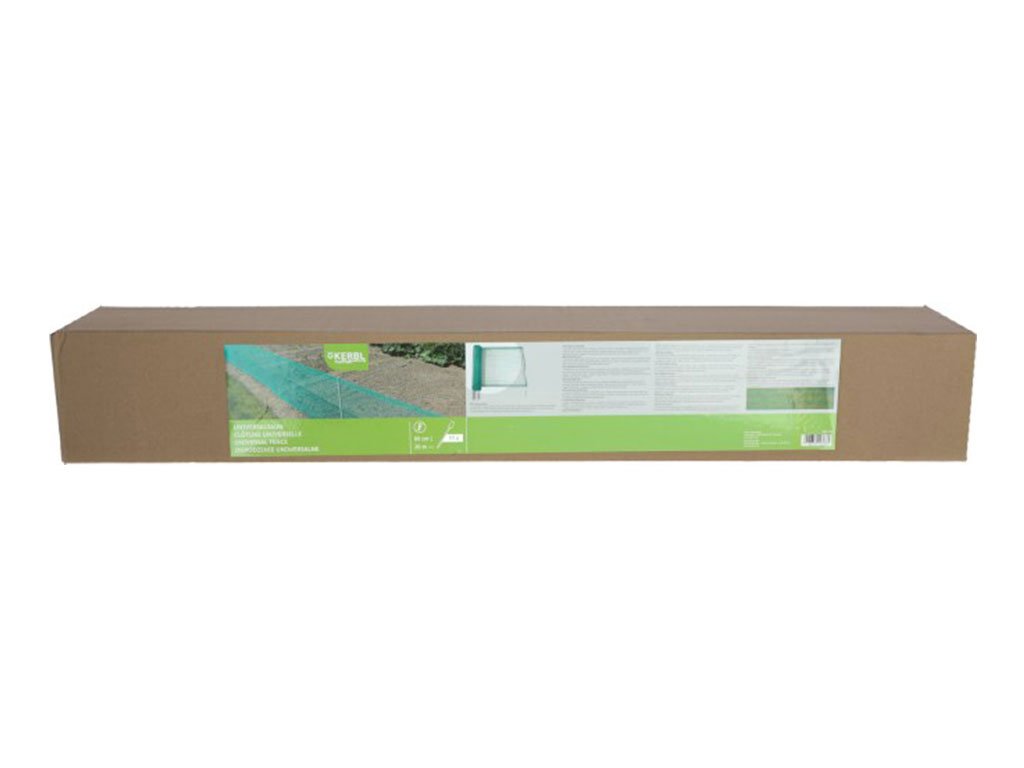Univerzální nevodivá ohradníková síť, velmi hustá síť s úzkými oky, zesílený horní a dolní lem sítě, 11 vpletených plastových tyček, plastové očko na tyčce, 1 hrot, výška 80 cm a délka 20 m.