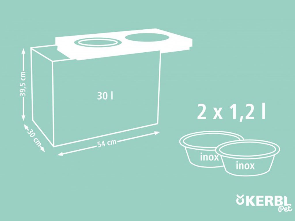 Vyvýšené misky pro psy se zásobníkem na granule KERBL EKO 54x30x39,5 cm